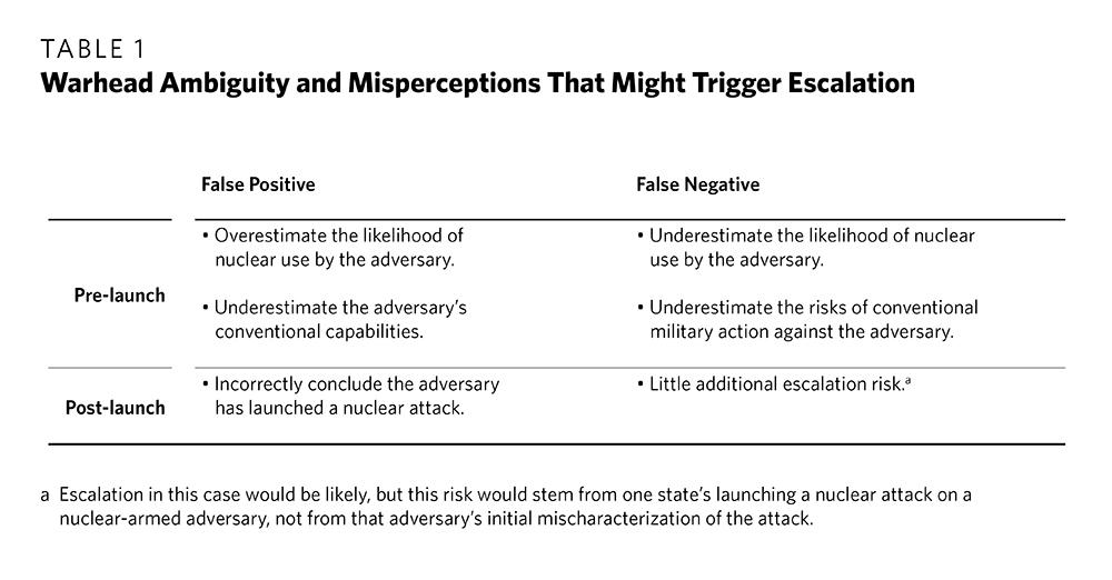 In making assumptions, decisionmakers are likely to—and, indeed, should—consider the risks of being wrong. When warhead ambiguity arises, the costs of a false negative could be high and much greater than those of a false positive. Of course, decisionmakers should recognize that nuclear weapons are generally less likely to be used than conventional weapons, but in a major conflict, when conventional deterrence has already failed, the danger that nuclear deterrence could also fail may seem very real. As a result, it is reasonable, from a military perspective, for decisionmakers to assume that ambiguous weapons are nuclear-armed.