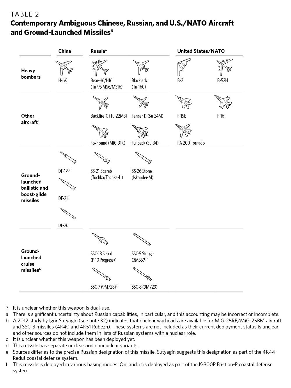 Design assessments. Analysts can mischaracterize or be unable to characterize a delivery system if they make use of incorrect or uncertain assessments about its design—in particular, about whether nuclear warheads, conventional warheads, or both have been produced for it. The biggest contemporary challenge is probably determining whether a delivery system clearly designed to accommodate a nonnuclear warhead also has a nuclear role. Recent public U.S. assessments about some foreign delivery systems, such as Russia’s SSC-5 cruise missile, indicate uncertainty on exactly this point.1 In a similar vein, a series of official U.S. assessments from the past decade present contradictory assessments about whether various Chinese air-, ground-, and sea-launched cruise missiles are dual-use or equipped only with conventional warheads.2