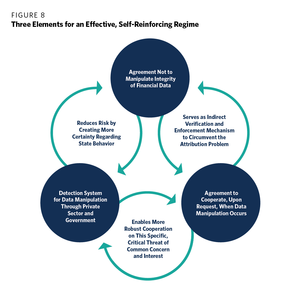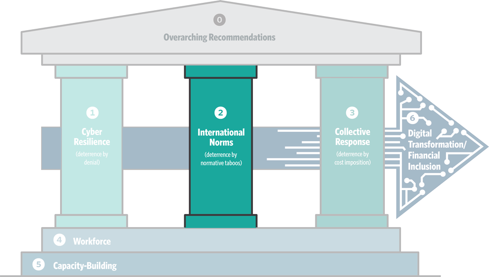 The global financial system’s operational cyber resilience and collective defense against cyber attacks is the foundation for any comprehensive strategy. This first core pillar provides protection not only against potential cyber attacks but also against accidental failures. National security officials would view such resilience as a means of deterrence by denial. A particular challenge looking ahead will be to ensure that the increasing emphasis on broader operational resilience does not detract attention from the unique aspects of cybersecurity risks—in particular, the risk that nefarious actors will specifically target financial institutions and the need to create the mechanisms to effectively protect against such threats.