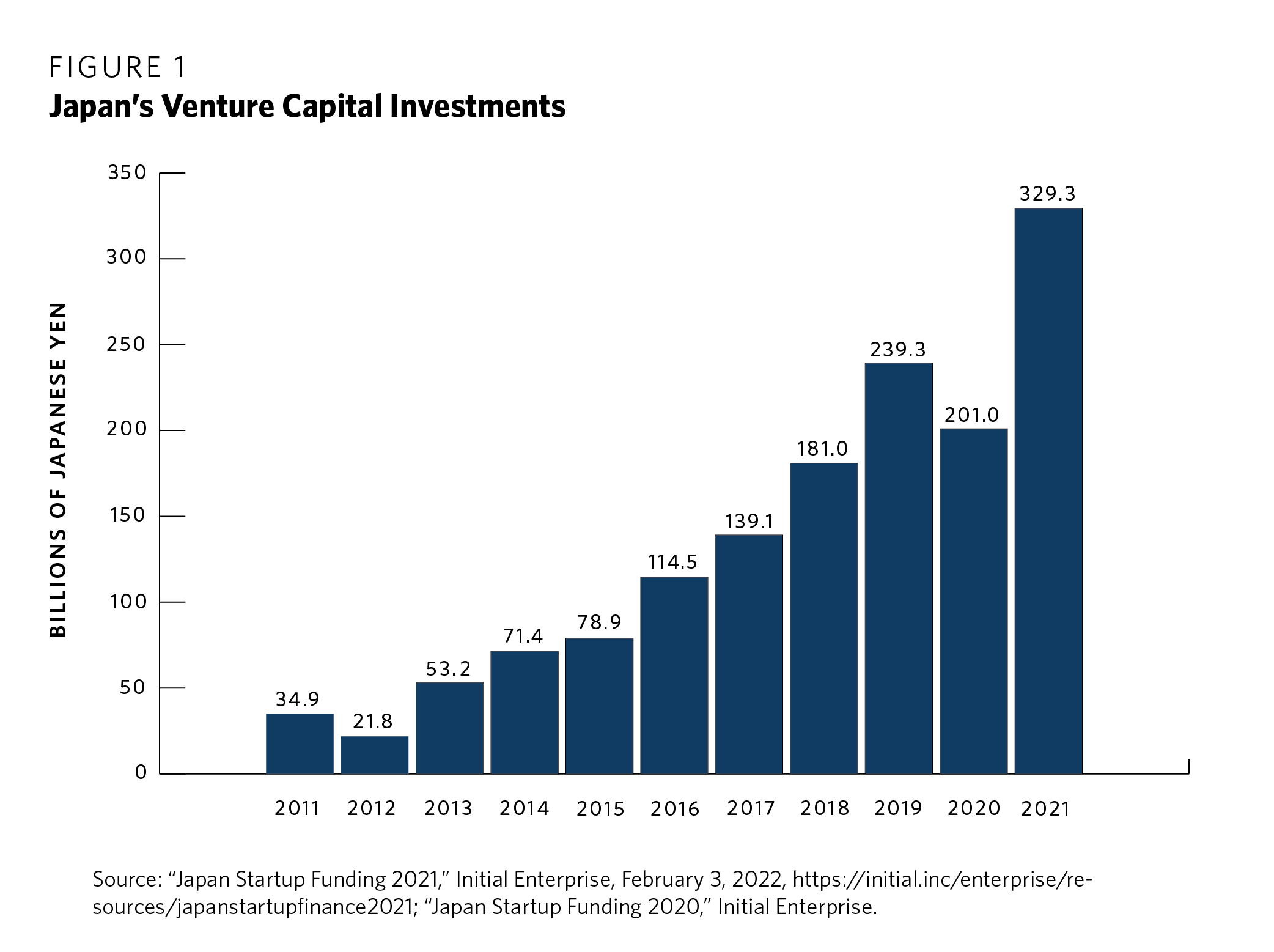 Source: “Japan Startup Funding 2020,” Initial Enterprise, February 25, 2021, https://initial.inc/articles/japan-startup-funding-2020-en